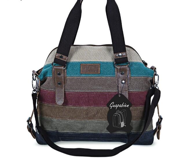 Fashionable Women Striped Color Block Patchwork Canvas Handbag Tote Shoulder Messenger Bag Description:A multifunctional canvas
